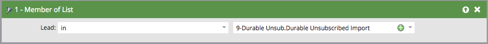 - The "Durable Unsubscribed Deletion List" will contain all the leads that are unsubscribed but should not be kept in the database. In other words, they were added to Marketo when you imported leads to the Durable Unsubscribe Import list. It's filters are set as is :