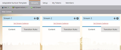 - You will need to create a couple empty streams. Think about how many streams you will typically have within a nurture. If you do not have specific number, I recommend you start with three. This will give you the framework to easily build out more streams if they are needed or you can easily delete the one or two extra streams if they are not needed.