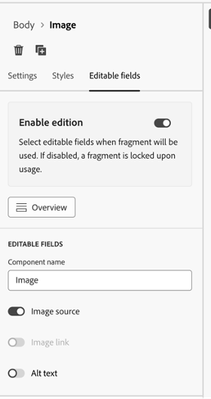 - Set Editability: For the text and button, turn on “Enable Edition” and keep them editable. For the button, allow editing for “Label” but keep “URL” uneditable.