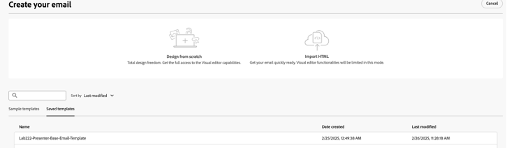 - Select an OOTB Template: After you give it a name “Bodea-Email-Template”, add a description like “Bodea Inc email template” and click “Create”. Then you will be navigated to select any Out-of-the-box template or create from scratch. Choose one of the OOTB templates