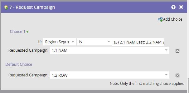 Essentially, in the first week's flow if the region equals "X" then we request a campaign which sends 50% version A and 50% version B, just using random sample. Everybody else isn't in the test get a previously approved email (which we are not testing 1.2 ROW above sends a different email to that group)