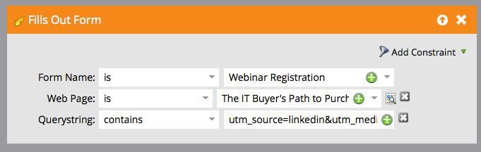 Querystring CONTAINS utm_source=linkedin&utm_medium=cpc&utm_campaign=linkedinads