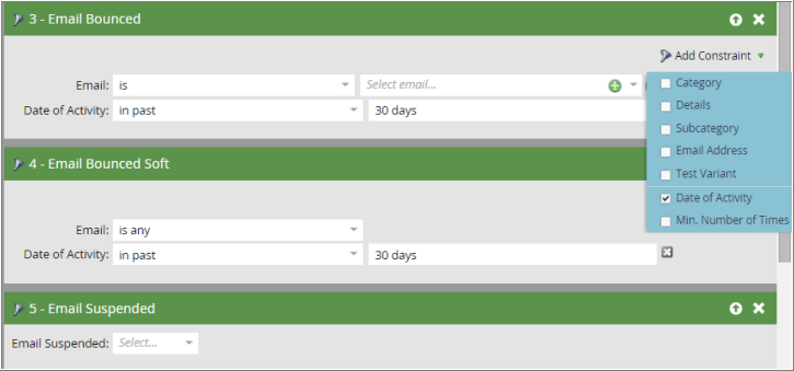 Email Suspended, Email Bounce, Email Bounce Soft, Marketing Suspended and Unsubscribed