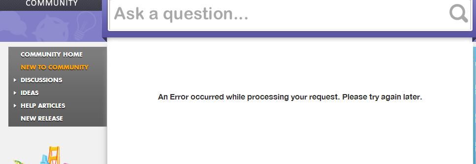 1. The Community Home page isn't loading (been like this all day). I can view discussions and ideas via the left box but can't get to the home page:
