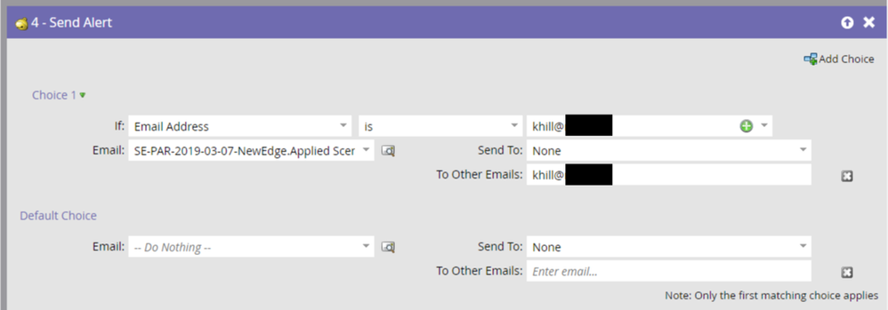 My current guess is that I should add the Send Alert action to the end of the program that marks people as having attended the webinar and I've come up with the options below. I have a feeling this isn't going to work as I hope but I haven't been able to think of anything else.