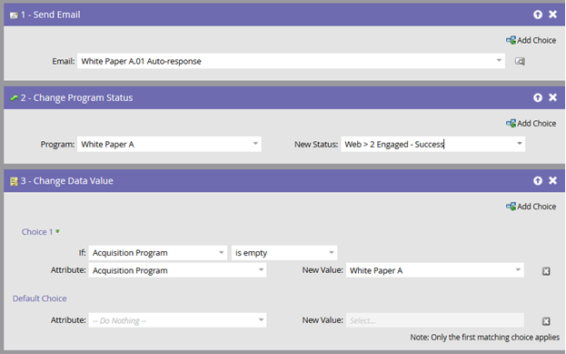 6. Create a Web Content program for White Paper A with a success campaign that triggers off the form fill.